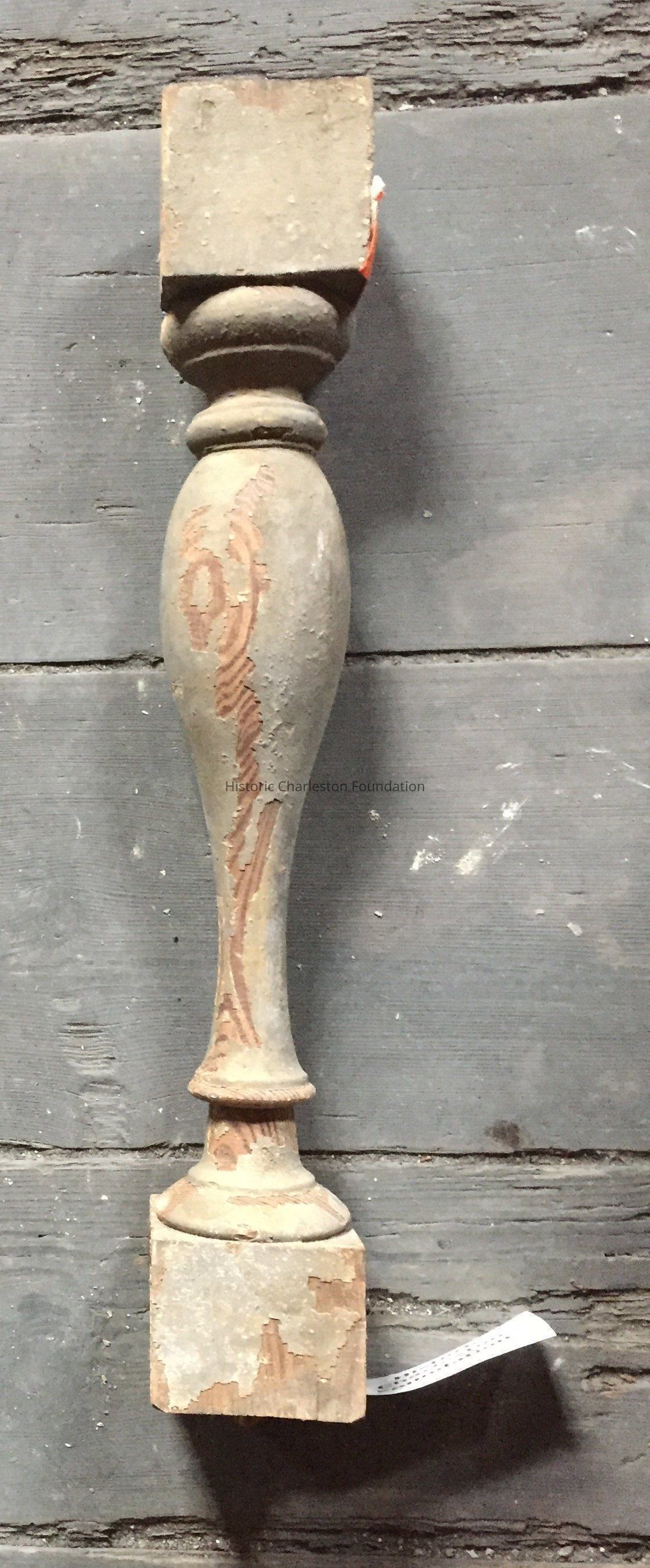 Wood spindle. Greek Revival, ca. 1840-1860. Paint is coming off in most places but no visible cracks or rotting.Collection
