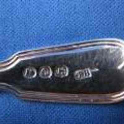 Master salt spoon, threaded round handle having oval gold wash bowl, handle engraved with crest depicting a cat in profile. Stamped with hallmarks of London, circa 1780-81, makers mark TB in rctangular cartouche, not identified.Collection