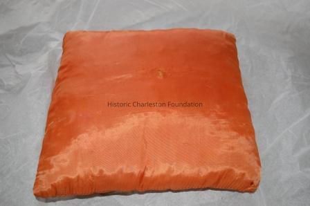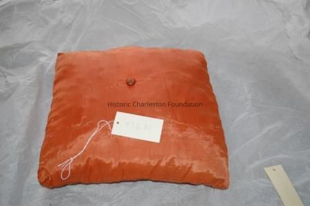 Square Cushion with Center Botton in Salmon Silk TaffetaEntry/Object ID