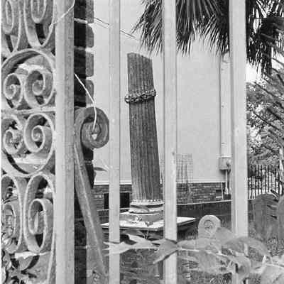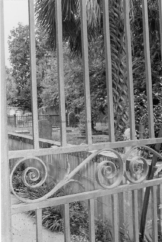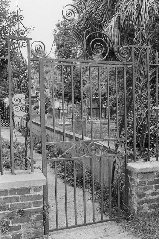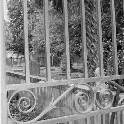 Three B&W photographs of gates of the St. Peter's Episcopal Church Graveyard, located at 6-10 Logan Street. The church was destroyed by fire in 1861.Collection