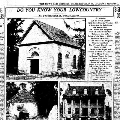 B&W photograph (scan) of St. Thomas and St. Denis Protestant Episcopal Church (Berkeley County, S.C.).Collection