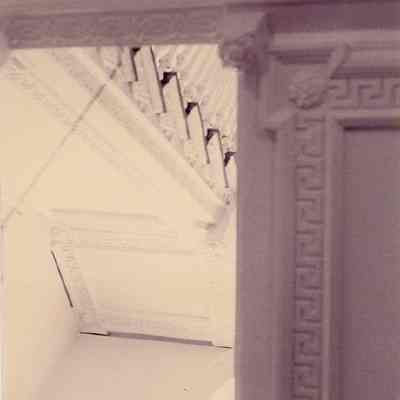 Three B&W photographs of the Cooper-Bee House staircase: