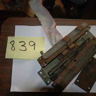 Five steel surface bolts (sliding locks) from a set of seven. A few of the pieces have their original keepers.