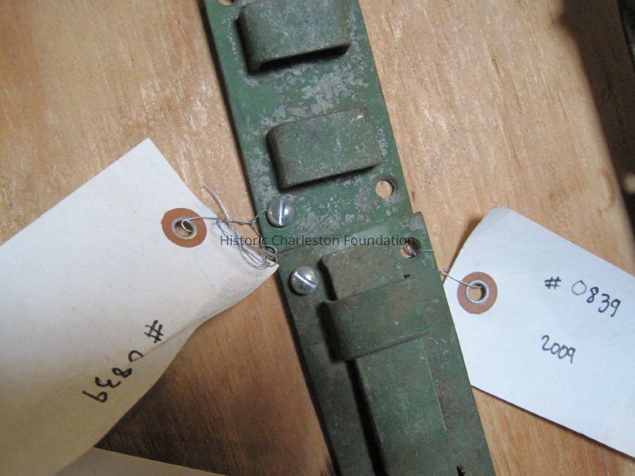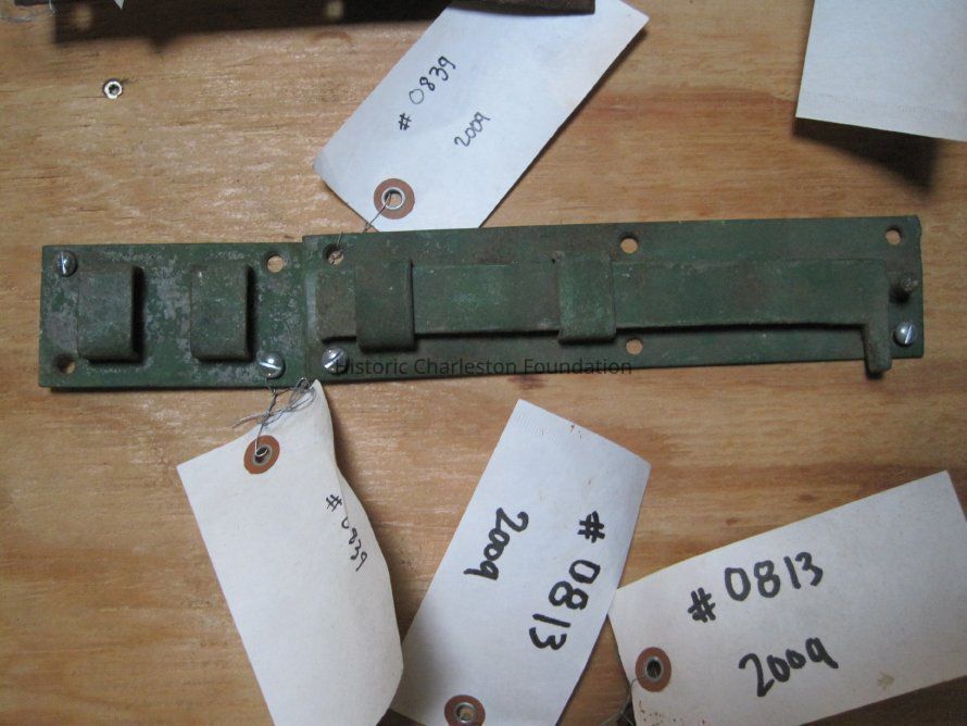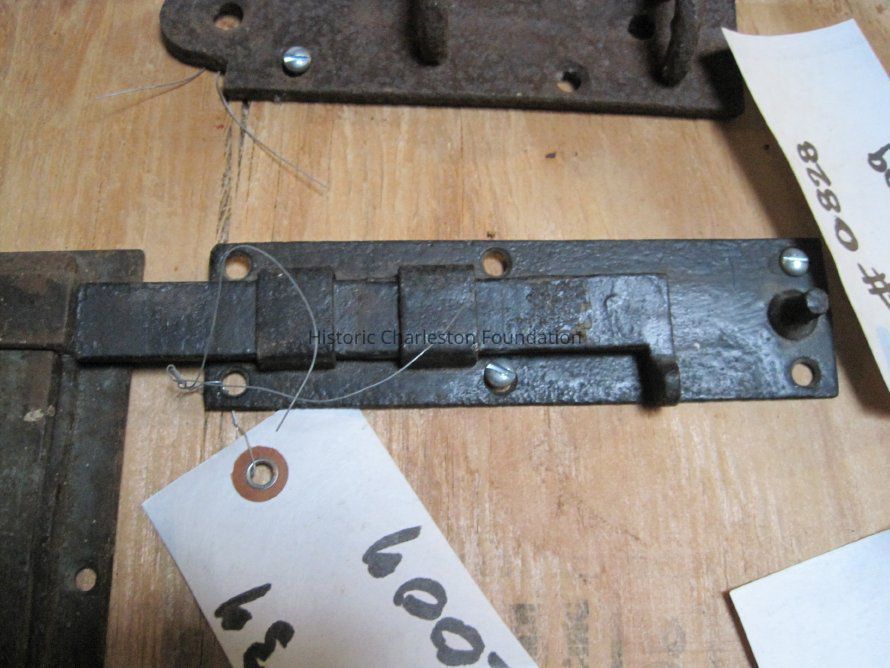 Two steel surface bolts (sliding locks) from a group of seven. A few of the pieces have their original keepers.Collection