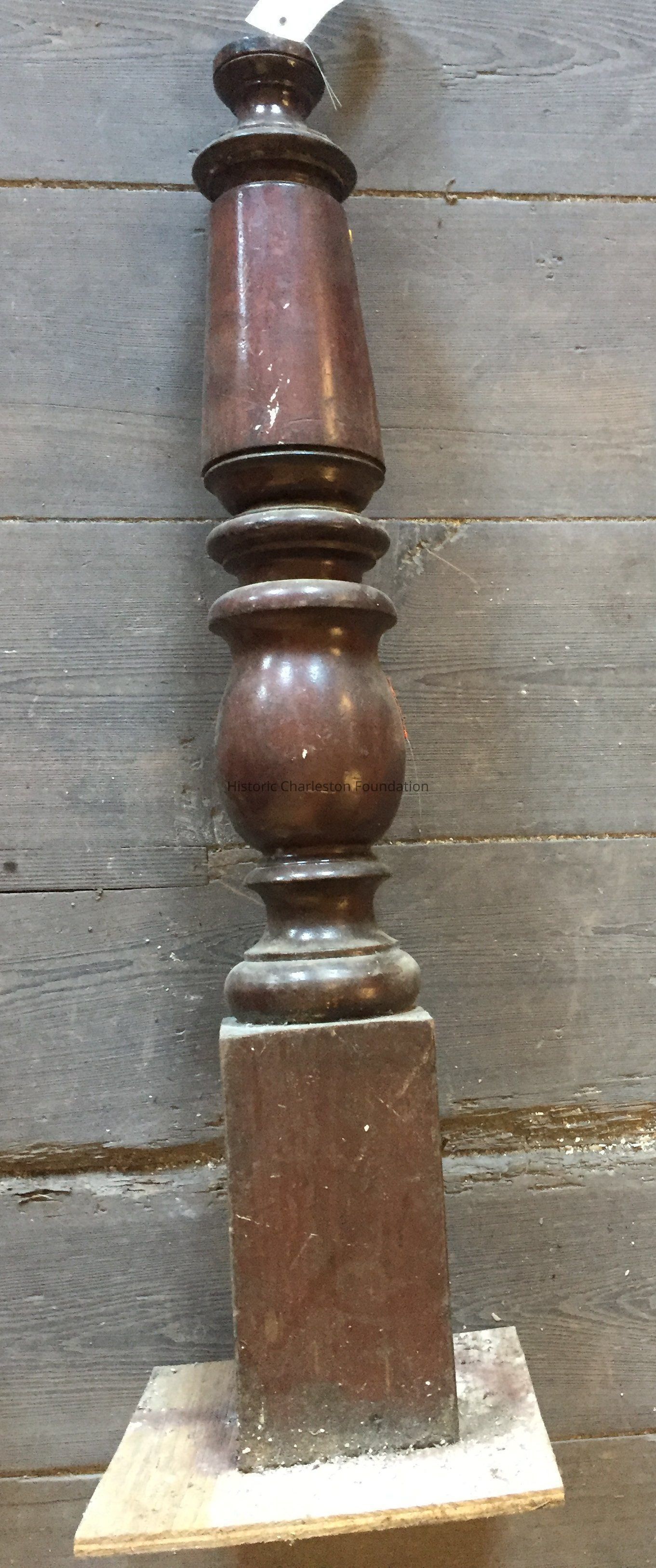 Mahogany newel post from Steinberg stair, ca. 1845-1860. Late Greek Revival. Came from Beaufain and Smith Streets; originally removed from the Von Dollen House at 90 Warren Street.Collection