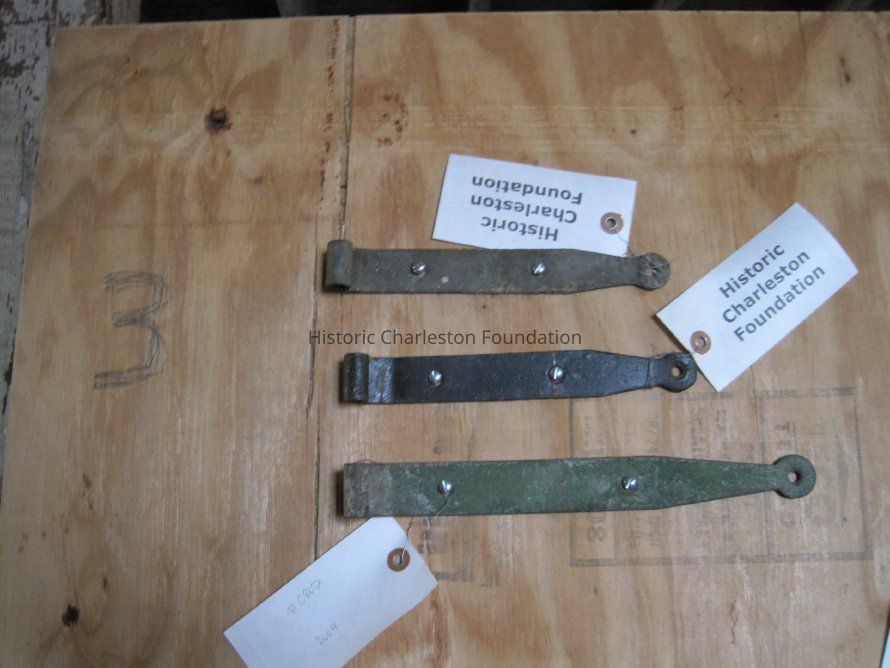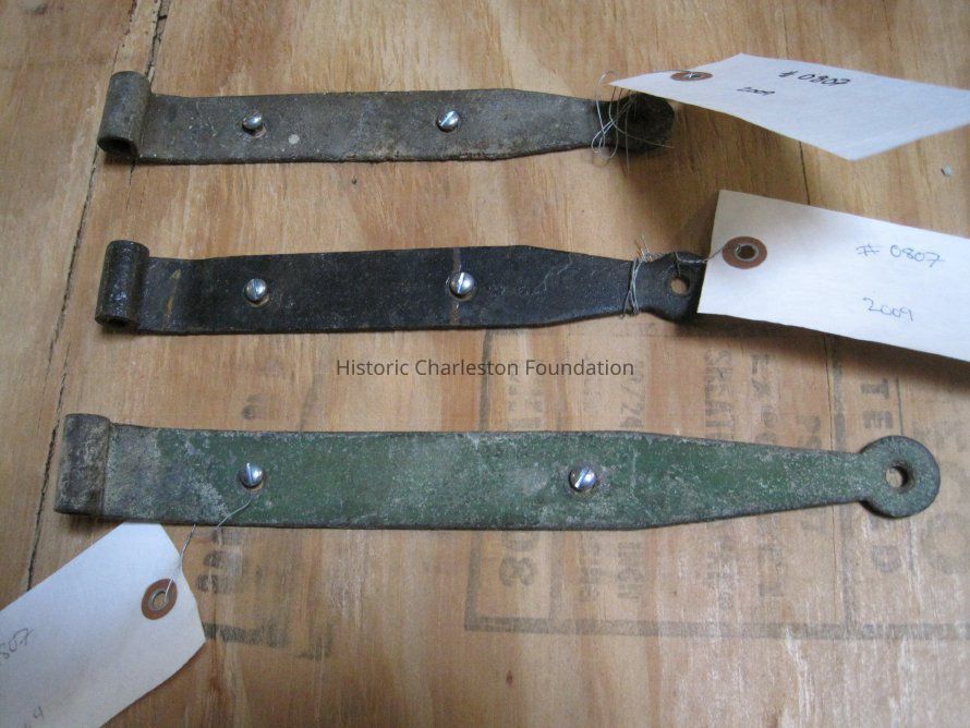 Three strap hinges from a group of 20 hinges that range in length from 7-13 inches.Collection