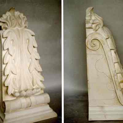 Photographs of the two surmounting console brackets that were restored. Two views of each bracket.Collection