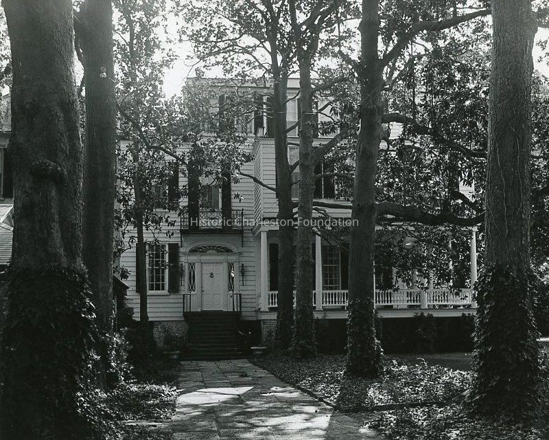 B&W photograph of the Sword Gate House (32 Legare Street), east (front) elevation.