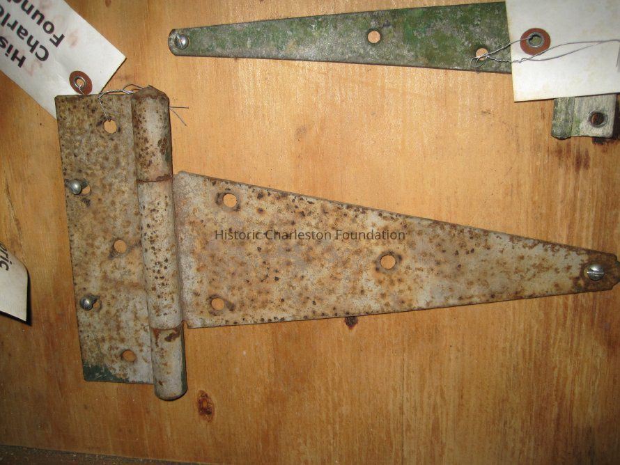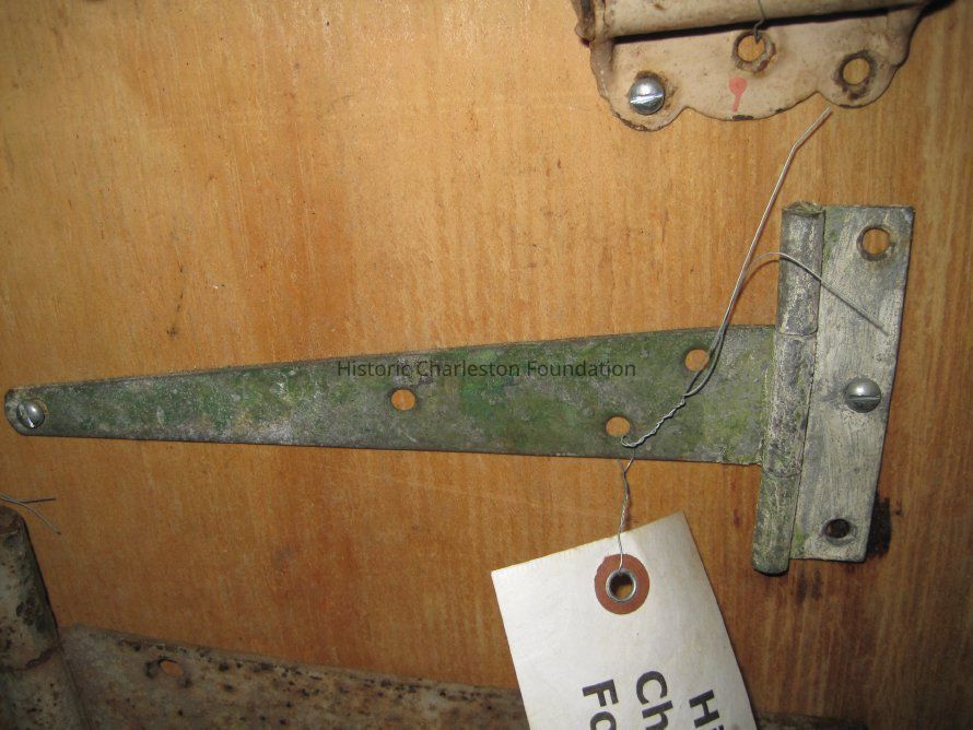 Two T strap hinges from a group of 9, that date from the 20th century. Pieces range in length from 7-14".Collection
