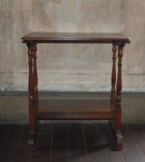 Occasional table, having rectangular molded top, on two shaped bracket supports, on four turned supports, over rectangular molded shelf, on shaped bracket feet.Collection
