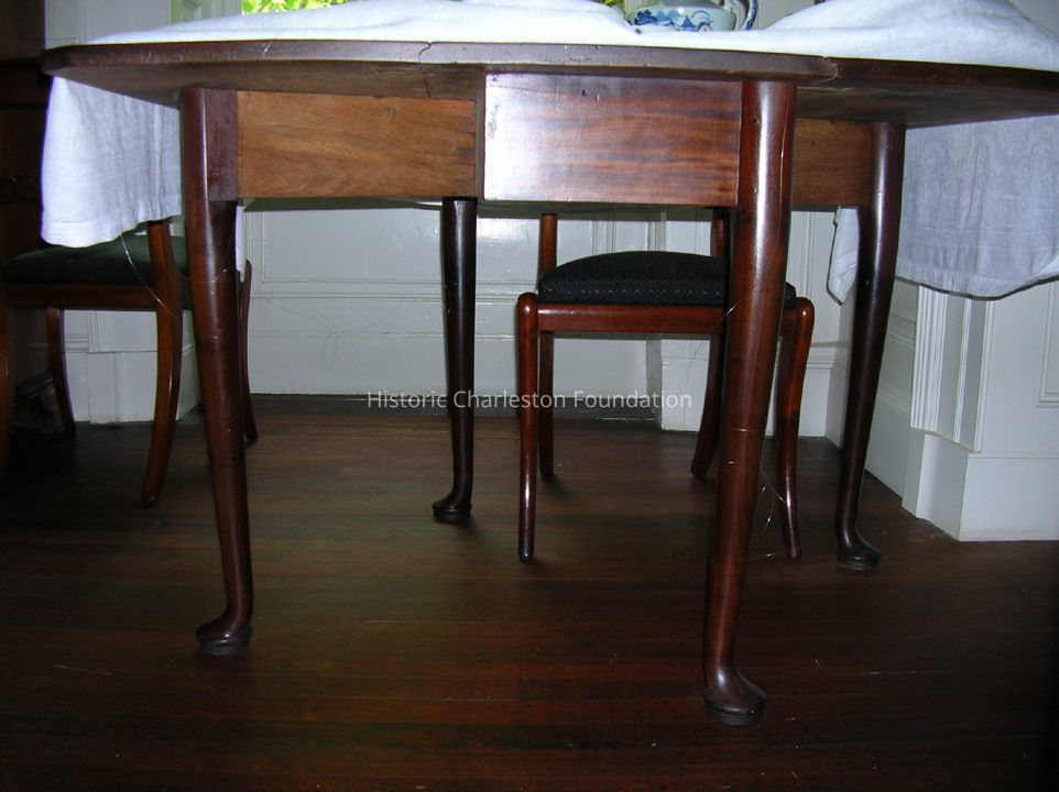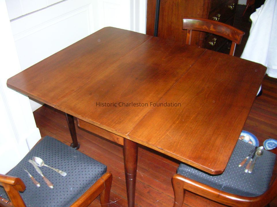 Table has stepped pad feet, straight legs, and a rectangular top with cut off corners.Collection