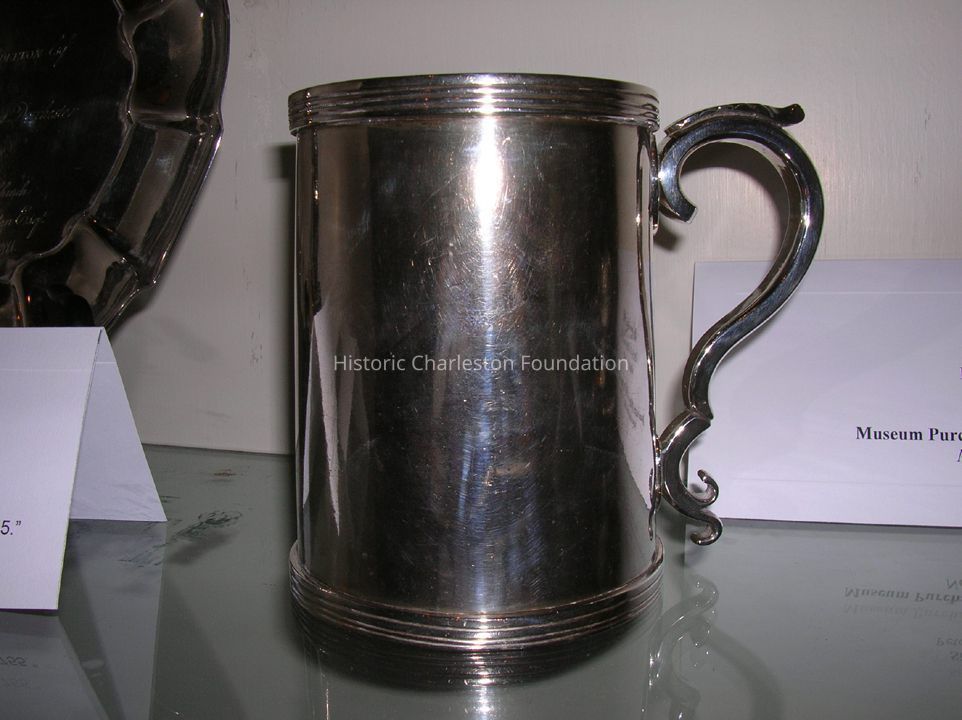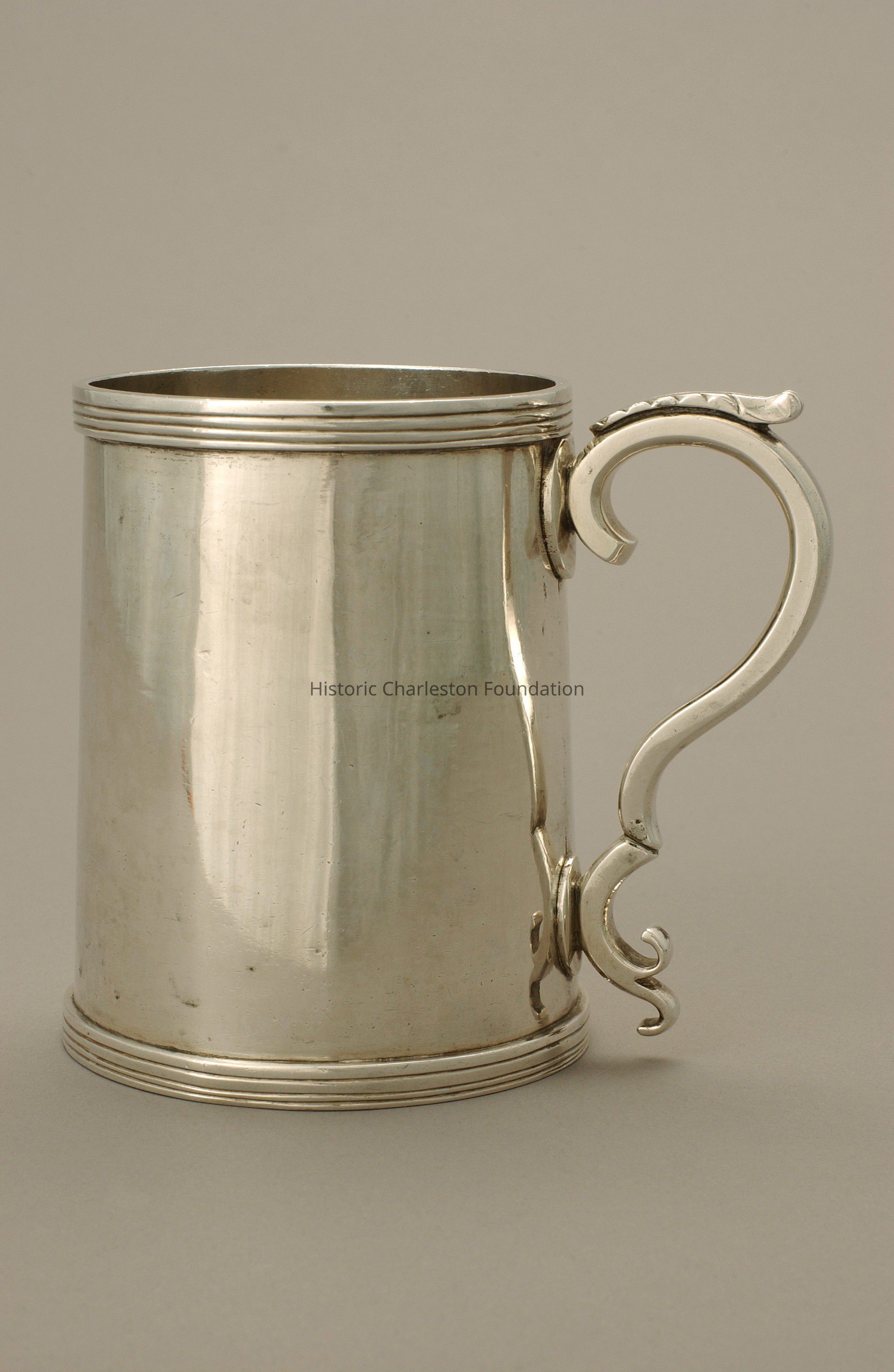 Silver Cann or Tankard, Peter Mood, Sr. maker, Charleston, SC, circa 1790-1800. Stamped with PM on interior of base. Half-pint size.