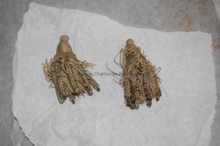 Two small blue and cream tassels that match tassels 46 and 48Collection