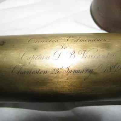 Brass Telescope Engraved "Charles Edmonston To Capt.D.B. Vincent, Charleston 23 Jan 1849"Collection