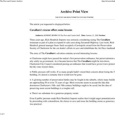 B&W photograph of The Cavallaro restaurant and nightclub on Savannah Highway, front elevation, before renovation by Rick Hendrick Motors.Collection