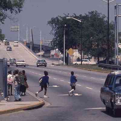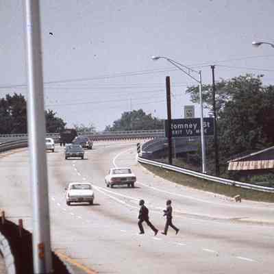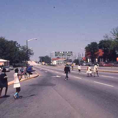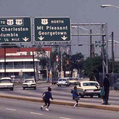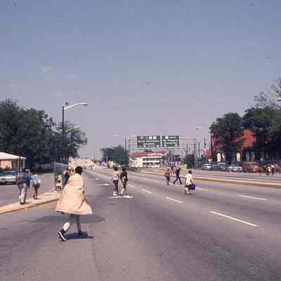 Thirteen (13) Ektachrome color slides of the Crosstown (a section of US 17 North), various views many of which showing pedestrians (including children) crossing the road.Photograph Details