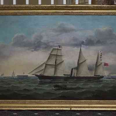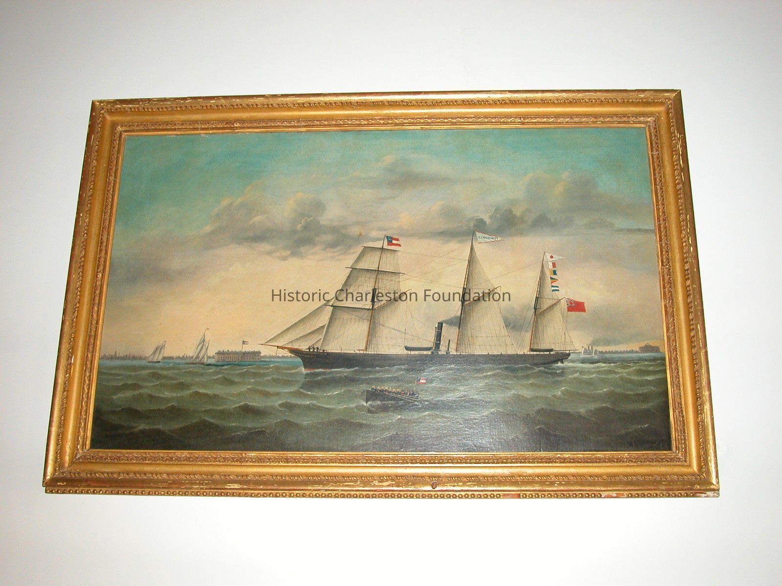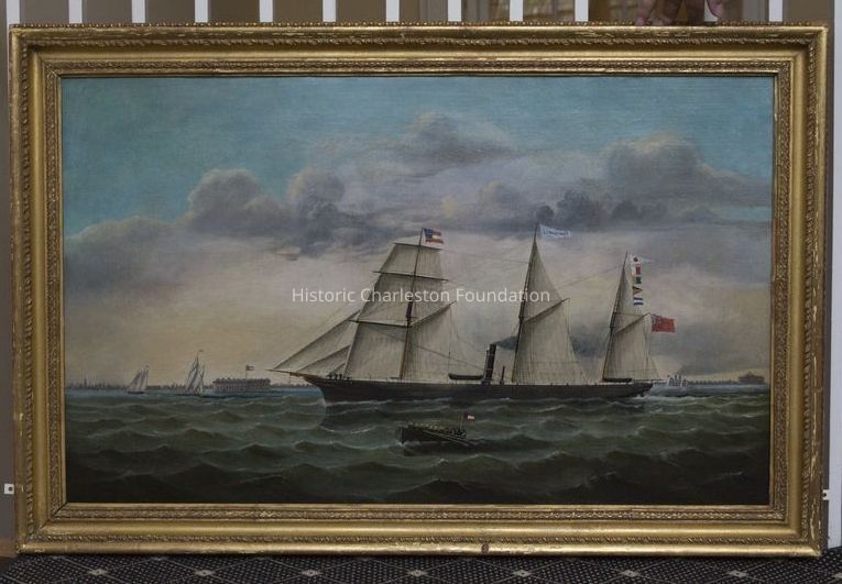 Painting of the Economist, a Three Masted Steamer, Leaving Charleston For Liverpool Via Nassau on April 1, 1862 Carrying Cotton. To the Left Is Fort Sumter in Confederate Hands After the Opening Shots of the War. Painted By William York in 1864. She Bears English Merchant Colors To Avoid Capture and Confiscation.Artwork Details