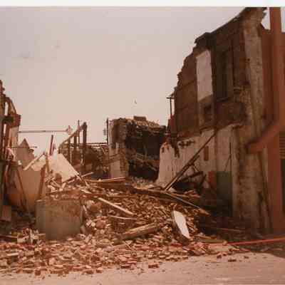 Two color photographs of remains of the Heart of Charleston Motor Hotel, mid-demolition. The hotel was located at 200 Meeting Street, on the east side of Meeting between Hayne and Pinckney Streets.Collection