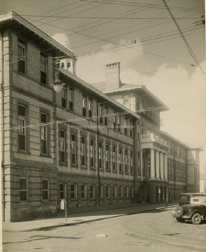 B&W photograph of the "Old Roper Hospital," located at the corner of Calhoun and Lucas Streets, ~316 Calhoun Street.Collection