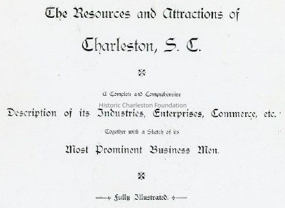 Photocopy of the original book featuring: "A complete and comprehensive description of its industries, enterprises, commerce, etc., together with a sketch of its most prominent business men." Includes brief history of Charleston broken down by period, and sections on Trade and Commerce, Transportation Facilities, Education Facilities, Commercial Bodies, Charleston as a Winter Resort, Charleston's Financial Condition.