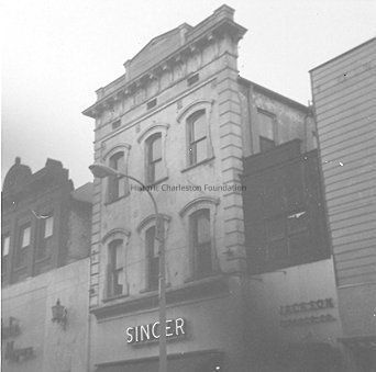 B&W photograph of the Feldman-Teskey Building (314 King Street), west (front) elevation. Occupied by the Singer Company. Also shows partial view of neighboring buildings on either side.Collection
