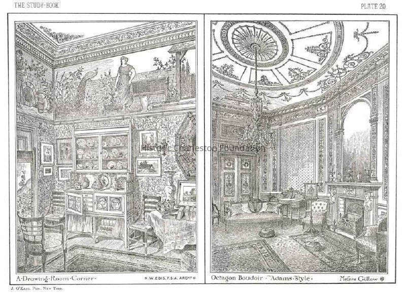 High resolution (300 dpi) scan of Plate 20 ("a drawing room corner" and an "octagon boudoir-Adams style" on DVD #40, 2007002-0043_Plate20.TIF.Created By