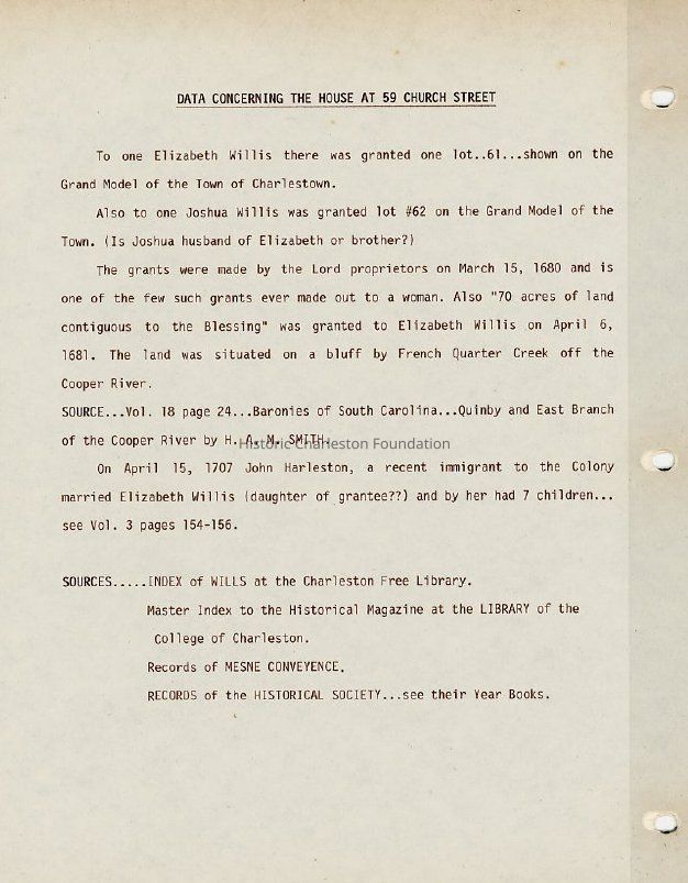 Historic Charleston Foundation Property RecordsAcquisition
