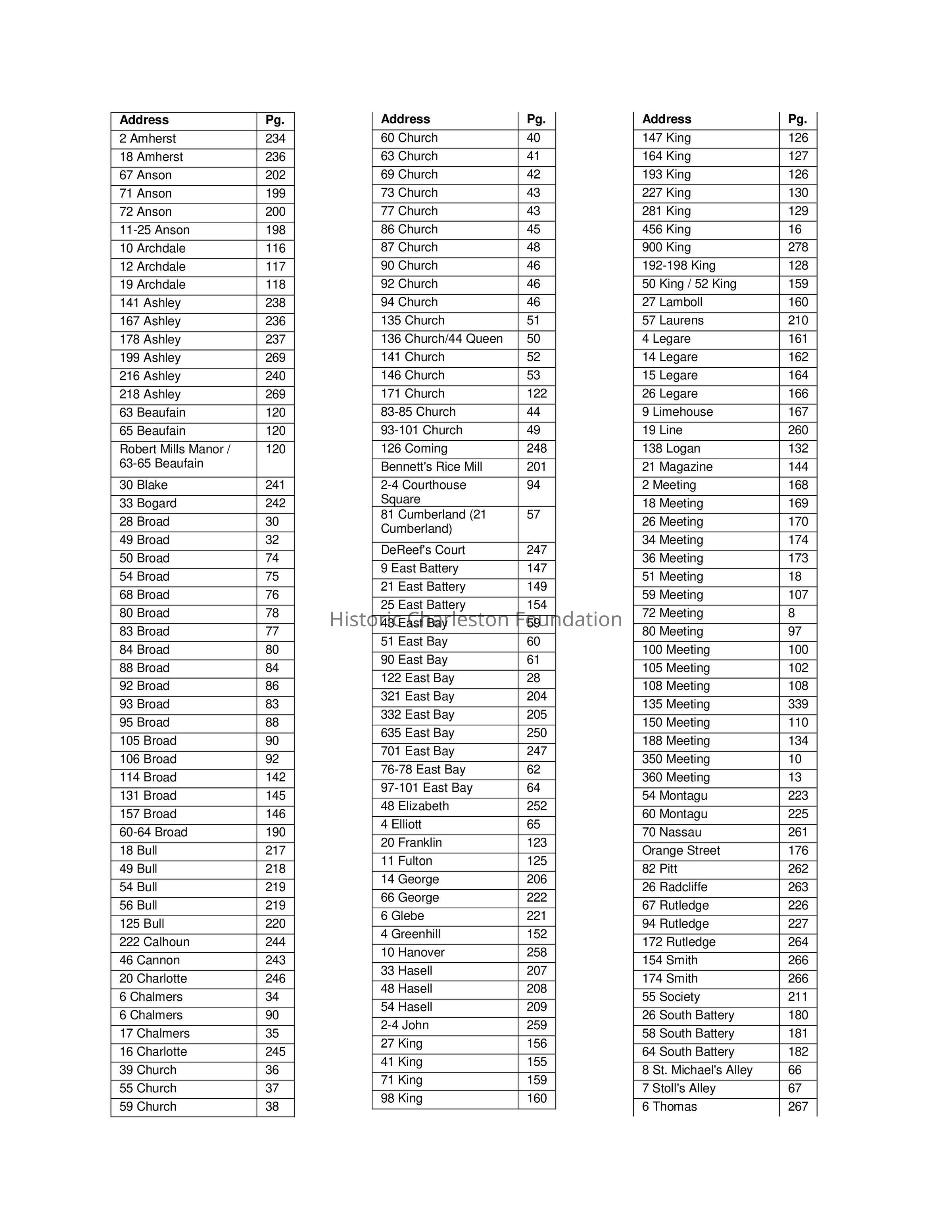 A comprehensive combination of historical research, photographs, measured drawings, and analysis of Charleston and Lowcountry architecture. Features the following buildings and other sites: 2 Amherst; 18 Amherst; 67 Anson; 71 Anson; 72 Anson; 11-25 Anson; 10 Archdale; 12 Archdale; 19 Archdale; 141 Ashley; 167 Ashley; 178 Ashley; 199 Ashley; 216 Ashley; 218 Ashley; 63 Beaufain; 65 Beaufain; Robert Mills Manor / 63-65 Beaufain; 30 Blake; 33 Bogard; 28 Broad; 49 Broad; 50 Broad; 54 Broad; 68 Broad; 80 Broad; 83 Broad; 84 Broad; 88 Broad; 92 Broad; 93 Broad; 95 Broad; 105 Broad; 106 Broad; 114 Broad; 131 Broad; 157 Broad; 60-64 Broad; 18 Bull; 49 Bull; 54 Bull; 56 Bull; 125 Bull; 222 Calhoun; 46 Cannon; 20 Charlotte; 6 Chalmers; 6 Chalmers; 17 Chalmers; 16 Charlotte; 39 Church; 55 Church; 59 Church; 60 Church; 63 Church; 69 Church; 73 Church; 77 Church; 86 Church; 87 Church; 90 Church; 92 Church; 94 Church; 135 Church; 136 Church/44 Queen; 141 Church; 146 Church; 171 Church; 83-85 Church; 93-101 Church; 126 Coming; Bennett's Rice Mill; 2-4 Courthouse Square; 81 Cumberland (21 Cumberland); DeReef's Court; 9 East Battery; 21 East Battery; 25 East Battery; 43 East Bay; 51 East Bay; 90 East Bay; 122 East Bay; 321 East Bay; 332 East Bay; 635 East Bay; 701 East Bay; 76-78 East Bay; 97-101 East Bay; 48 Elizabeth; 4 Elliott; 20 Franklin; 11 Fulton; 14 George; 66 George; 6 Glebe; 4 Greenhill; 10 Hanover; 33 Hasell; 48 Hasell; 54 Hasell; 2-4 John; 27 King; 41 King; 71 King; 98 King; 147 King; 164 King; 193 King; 227 King; 281 King; 456 King; 900 King; 192-198 King; 50 King / 52 King; 27 Lamboll; 57 Laurens; 4 Legare; 14 Legare; 15 Legare; 26 Legare; 9 Limehouse; 19 Line; 138 Logan; 21 Magazine; 2 Meeting; 18 Meeting; 26 Meeting; 34 Meeting; 36 Meeting; 51 Meeting; 59 Meeting; 72 Meeting; 80 Meeting; 100 Meeting; 105 Meeting; 108 Meeting; 135 Meeting; 150 Meeting; 188 Meeting; 350 Meeting; 360 Meeting; 54 Montagu; 60 Montagu; 70 Nassau; Orange Street; 82 Pitt; 26 Radcliffe; 67 Rutledge; 94 Rutledge; 172 Rutledge; 154 Smith; 174 Smith; 55 Society; 26 South Battery; 58 South Battery; 64 South Battery; 8 St. Michael's Alley; 7 Stoll's Alley; 6 Thomas; 14 Thomas; 35 Tradd; 54 Tradd; 70 Tradd; 92 Tradd; 102 Tradd; 106 Tradd; 149 Tradd ; 72-74 Tradd; 18-20 Wentworth; South Carolina Railroad Complex; Sullivans Island; Hampton Park/Upper Peninsula; West Ashley/Albemarle Point/James Island/John Island; McLeod Plantation; Stono Plantation; Snee Farm; Sweetgrass Basket Stands; Oakland Plantation; St. Thomsa and St. Denis; Halidon Hill Plantation; Middleburg Plantation; Pompion Hill Chapel; Hyde Park Plantation; Strawberry Chapel; Taveau Church; Mepkin; Biggin Church; Mulberry Plantation; Exeter Plantation; Medway Plantation; St. James Goose Creek; North Charleston / Park Circle; Chicora / Cherokee; War Housing / Ben Tillman Homes / George S. Legare Homes; Yeamans Hall; Summerville; Ashley River Road; St. Andrew's Church; Middleton / Miss Eliza's House; Drayton Hall; Graveyards; and Charleston Ironwork