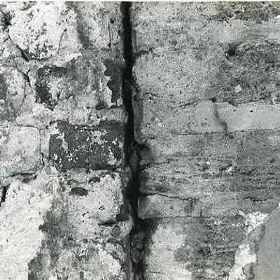 c: Exposed east wall showing masonry of brick and large coral or "Bermuda" stone.Collection