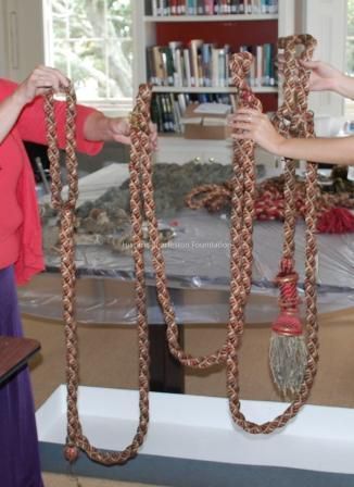 Large red and white rope tieback with one tassel and top of second tasselCollection