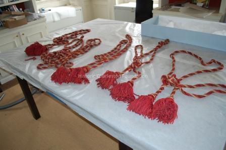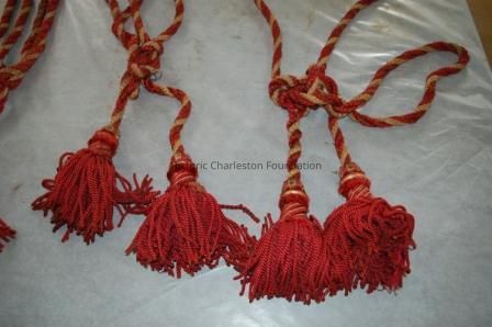 Red braided tiebacks with red and gold tassels, 1 is missing tasselsCollection