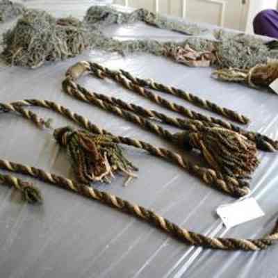 Green and cream rope tiebacks with one tassel eachCollection