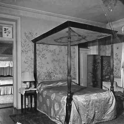 b: Bedroom and view of another bedroom seen through doorway. Written on back: "Bedroom, Timothy Ford House, Meeting and Ford Court, Charleston single [house], Adam decor."Collection