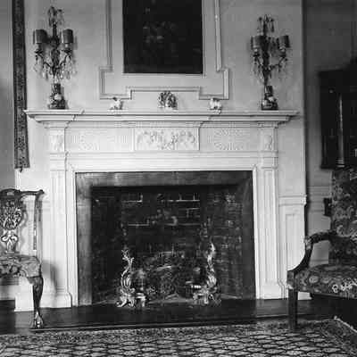 a-b: Drawing room with fireplace.