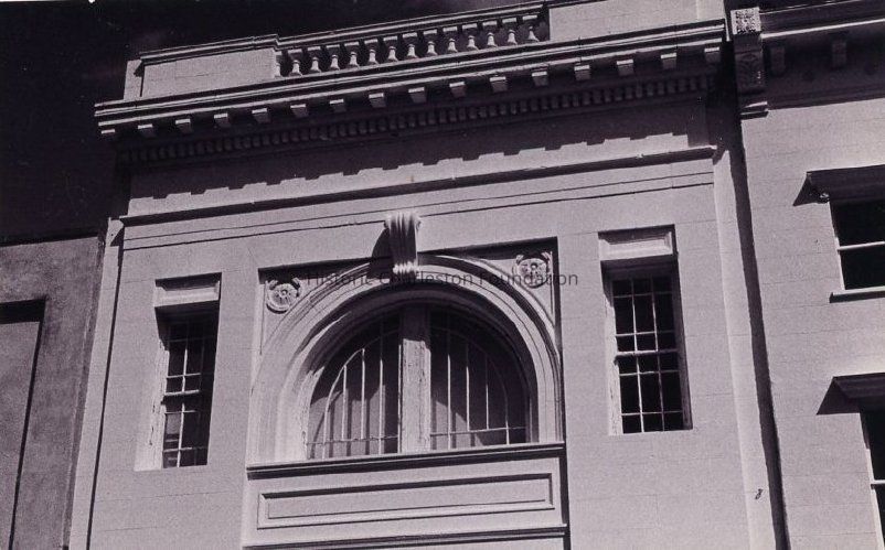 Constructed 1915-16. The architect John D. Newcomer designed this edifice for a building and loan company and its construction was completed by 1916 at a cost of $13,000. Built of brick with a veneer of limestone, the upper floor with a semicircular window topped by a console bracket and a surmounting cornice supporting a roof balustrade derives from the Beaux Arts style. The Title Guarantee Building contrasts with the late-Italianate style storefront added to a 1790s building at 300 King Street. The Onslow Candy Company added the surviving pressed-metal window hoods and the bracketed cornice. The arch with bracketed keystone at the Title Guarantee Building, however, harmonizes with the surviving arched entry at 304 King Street. (Poston, Buildings of Charleston.)Collection