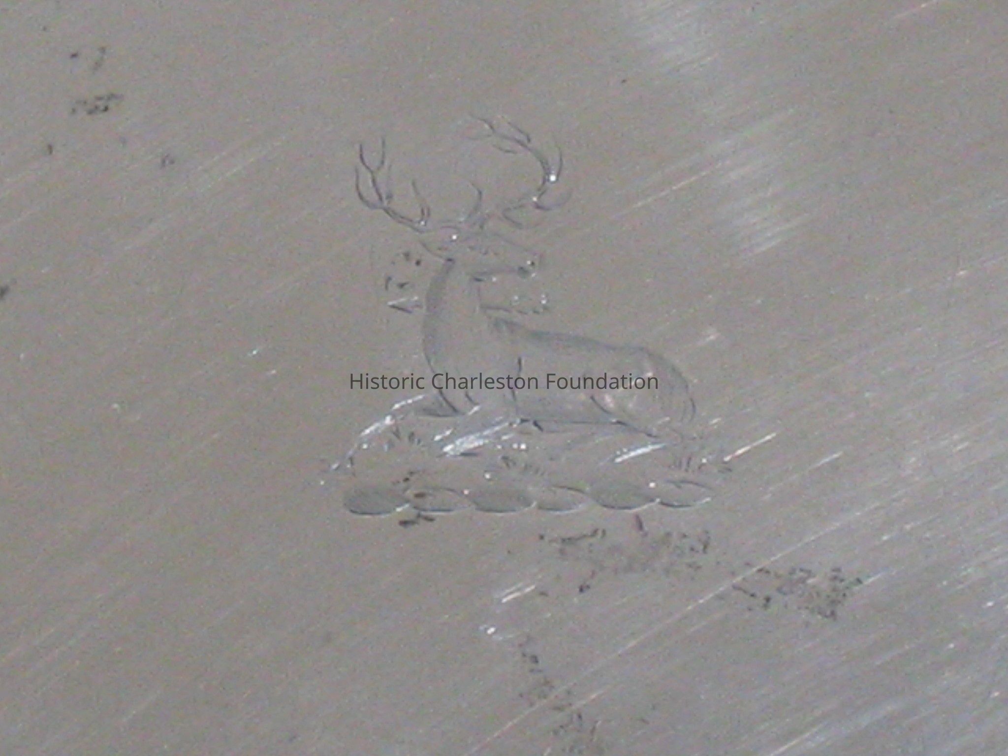 Pitting and scratches in several areas, discoloration in several areas, firemarks evident on bottom of tray, hammer marks on curve evident in raking light.General Notes