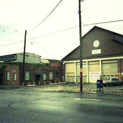 Twenty-five color negatives of the exterior and interior of the trolley barn at 665 Meeting Street.
