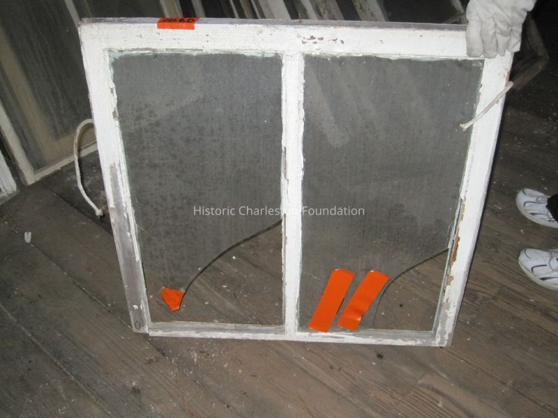 Two-Light Window. 31.5"H x 31"W. Top sash only. Broken glass.Collection