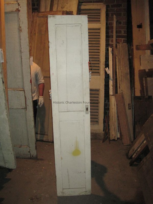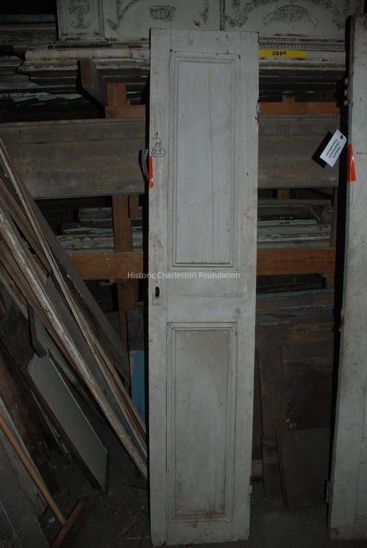Two-Panel Door (half). 81"H x 16"W. Painted white. Crack in top panel. Possibly closet doors.Collection