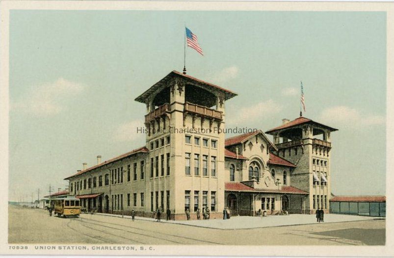 Postcards, Lost Architecture, Demolished buildings, lost buildings, Columbus Street, Union Station (Charleston, S.C.), Trolley cars, Lost architecture--South Carolina--Charleston, Railroad stations--South Carolina--CharlestonPostcard Details