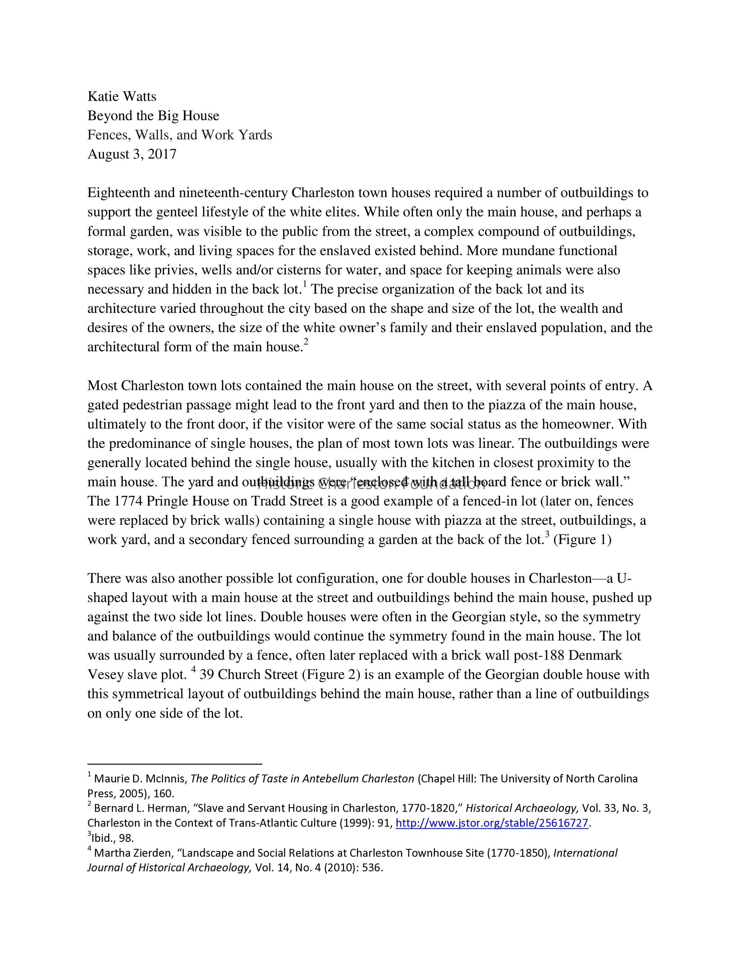 Narrative "Beyond the Big Houses: Fences, Walls, and Work Yards." By Katie Watts, HCF Intern, Summer 2017.