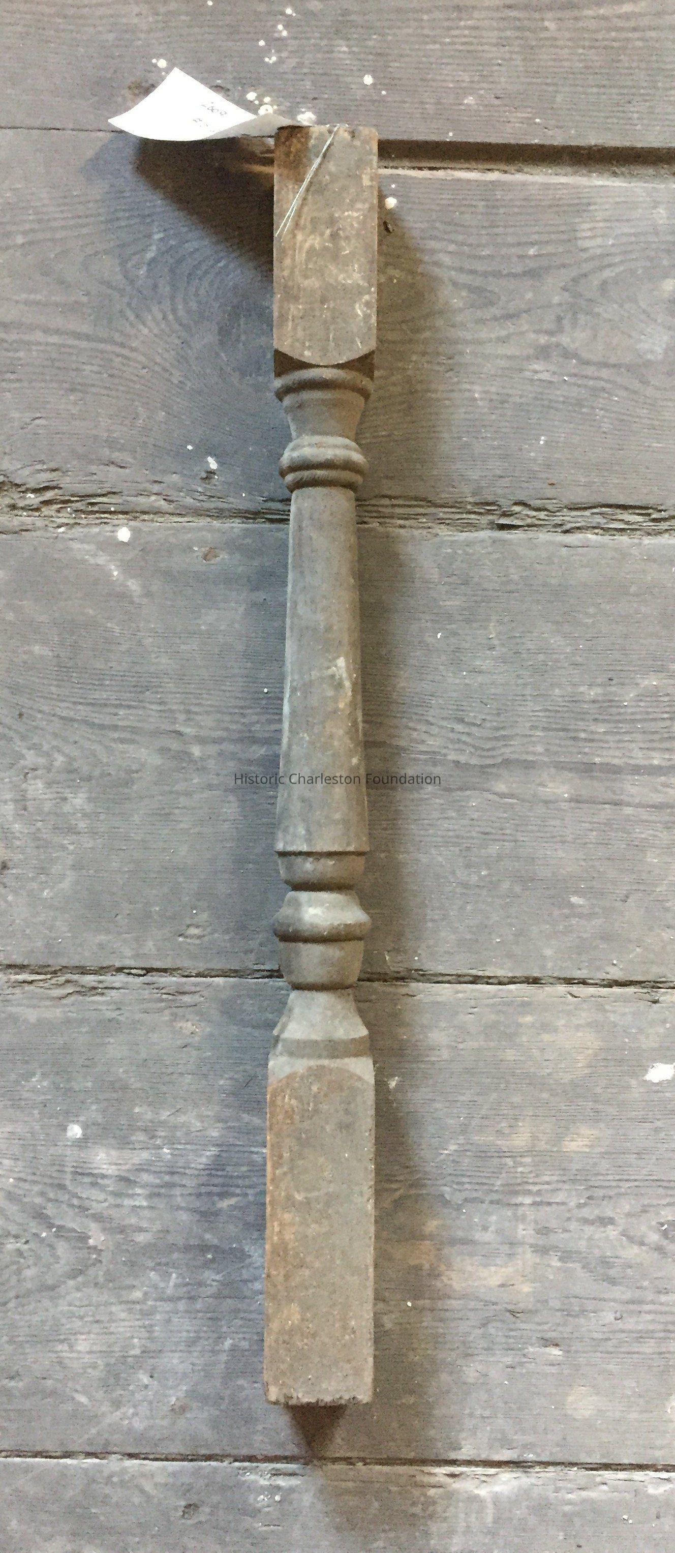 Wood spindle with white paint. Victorian, ca. 1860-1880. Vase pattern with rectangular base and cap. One small chip of wood gone but otherwise in good condition.Collection