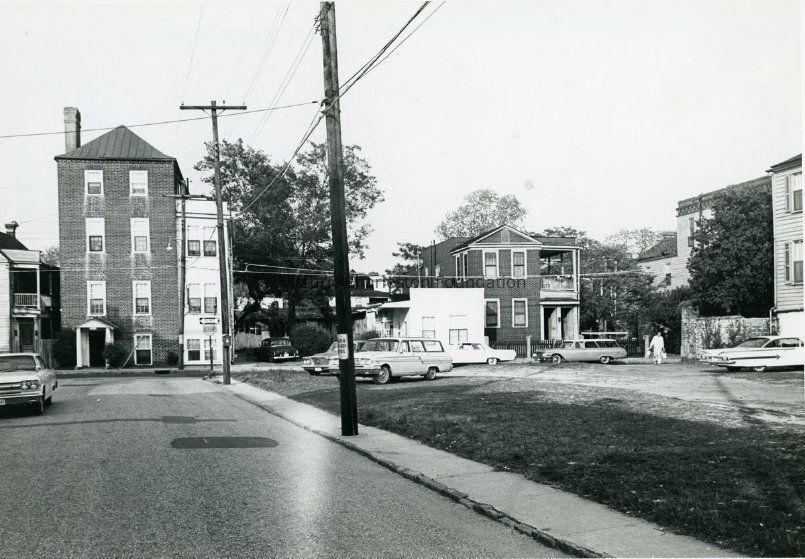 b: View of the terminus of George Street at Anson Street, featuring 86 Anson Street prior to its relocation, and the houses in the vicinity (88 Anson, 90 Anson, 91 Anson, 92 Anson, 94 Anson).Collection