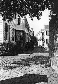 B&W photograph of a view on Stoll's Alley.Collection