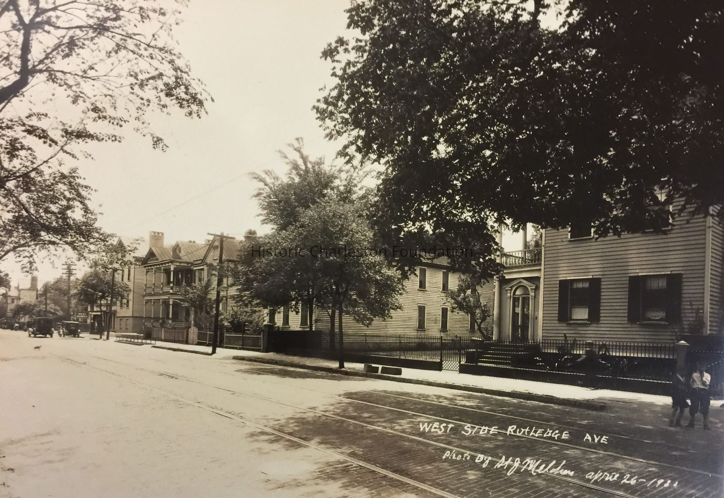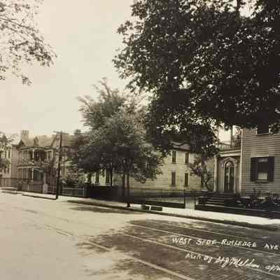 b: View looking south on Rutledge Avenue from 235 Rutledge. Also shows houses to its south, 231 Rutledge Avenue, 229 Rutledge Avenue, 227 Rutledge Avenue, and 223 Rutledge Avenue. Photo is captioned: "West side Rutledge Ave. Photo by St. J. Melcher, April 26, 1930."