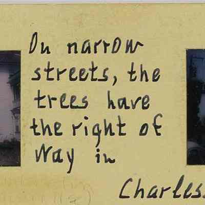Captioned "On narrow streets,the trees have the right of way in Charleston, S.C."