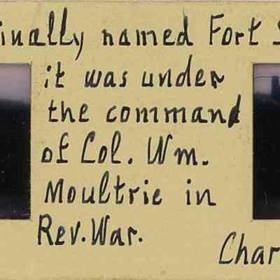 b: Captioned "Originally named Fort Sullivan, it was under the command of Col. Wm. Moultrie in Rev. War."