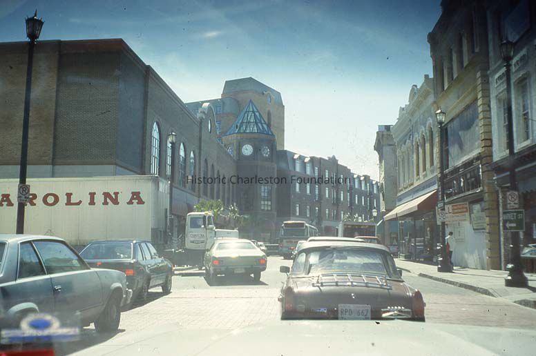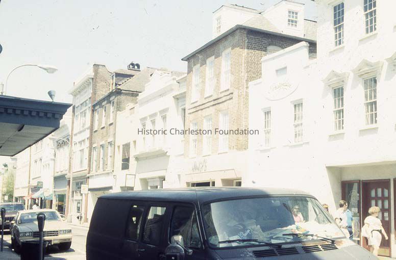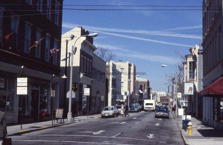 d: View of the 250 block of King Street, looking north, now the site of Charleston Place. Slide dated March 1981.