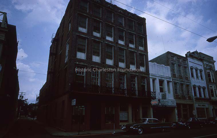 b: View of King Street buildings between Princess and Market Streets, now the site of Majestic Square: 211-213 King (Palmetto Hotel), 215 King (Stephan's), 217 King, 219 King (Rice Bros.). Kodachrome slide dated May 1965.
