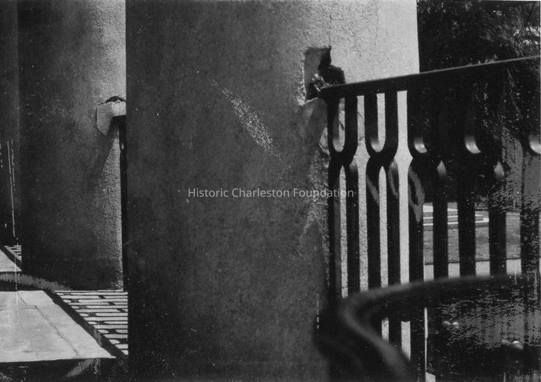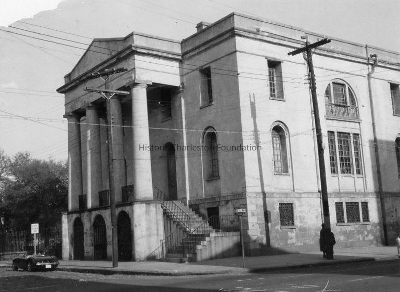 a: Corner view of the building showing the north (Chalmers Street) and west (Meeting Street) elevations. Also shows the street corner. Dated April 1958.